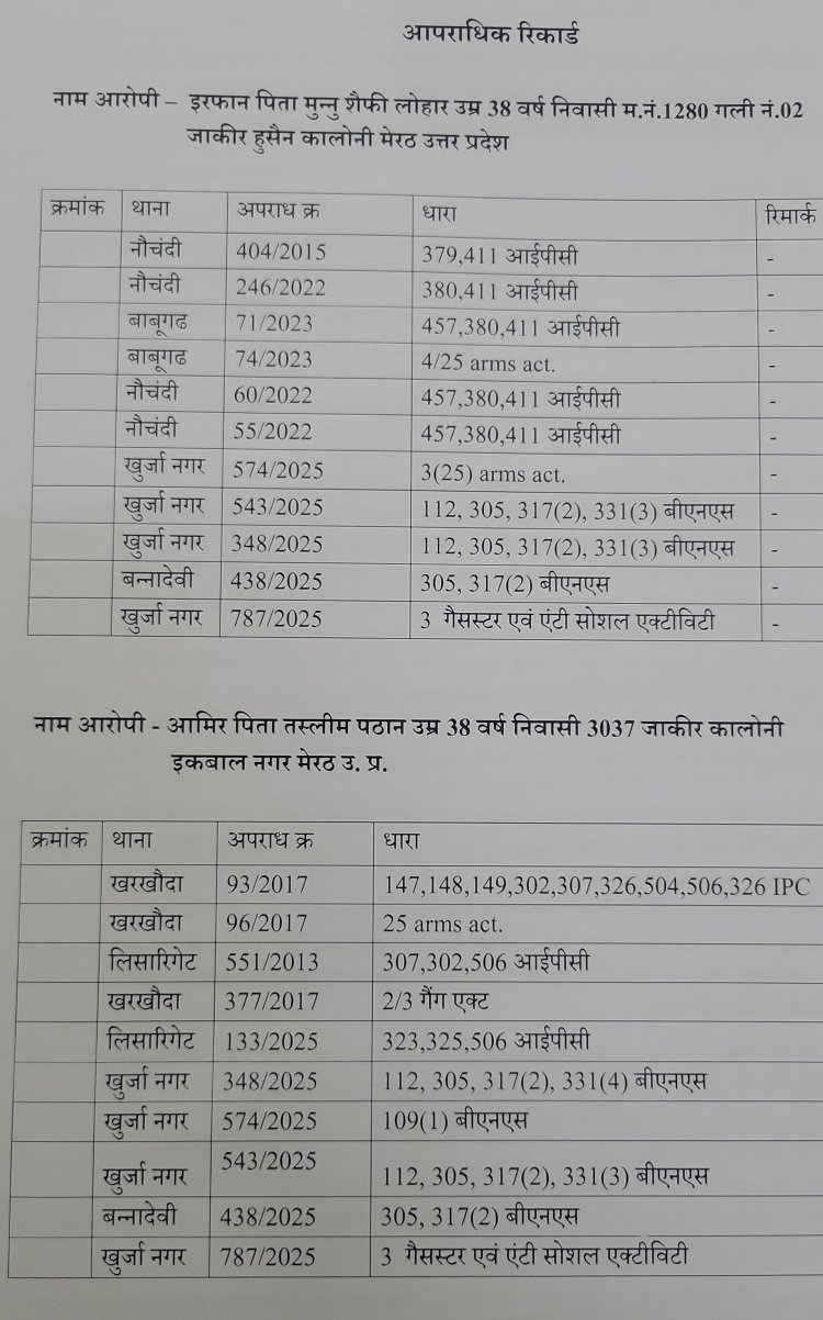 अपराध का लंबा इतिहास: आरोपी आमिर पर उत्तर प्रदेश और दिल्ली में हत्या, लूट और गैंगस्टर एक्ट जैसे 10 गंभीर मामले दर्ज हैं। वहीं, इरफान पर चोरी और आर्म्स एक्ट के 11 मामले दर्ज हैं। ये दोनों आरोपी लंबे समय से फरार चल रहे थे।